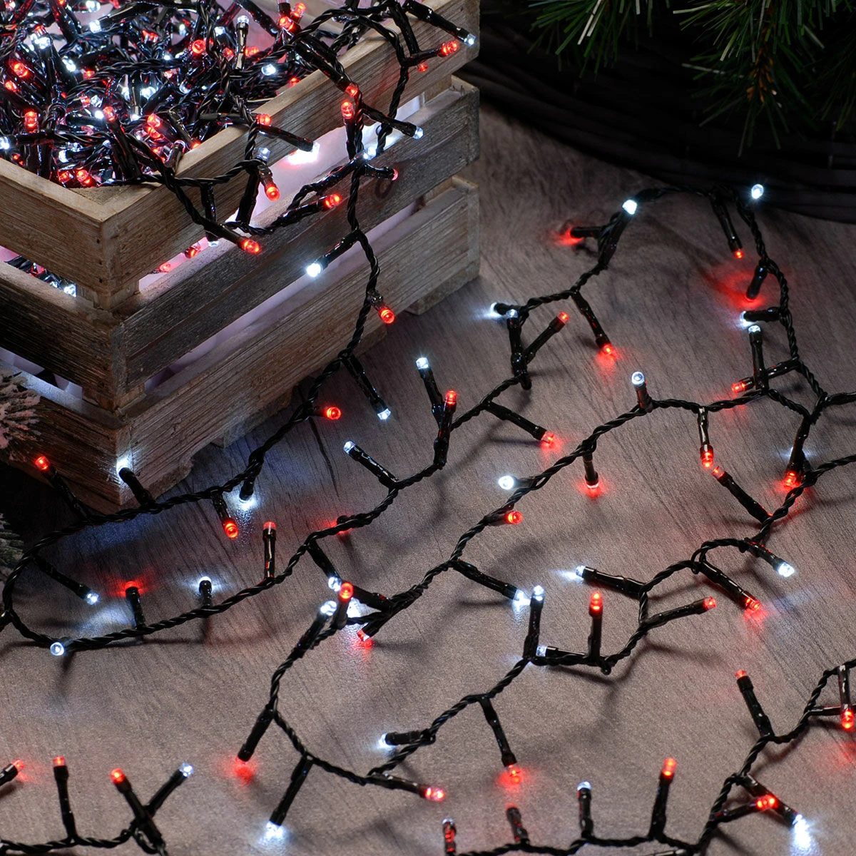 15.5m Outdoor Twinkling Christmas Tree Fairy Lights, 600 Red & White LEDs
