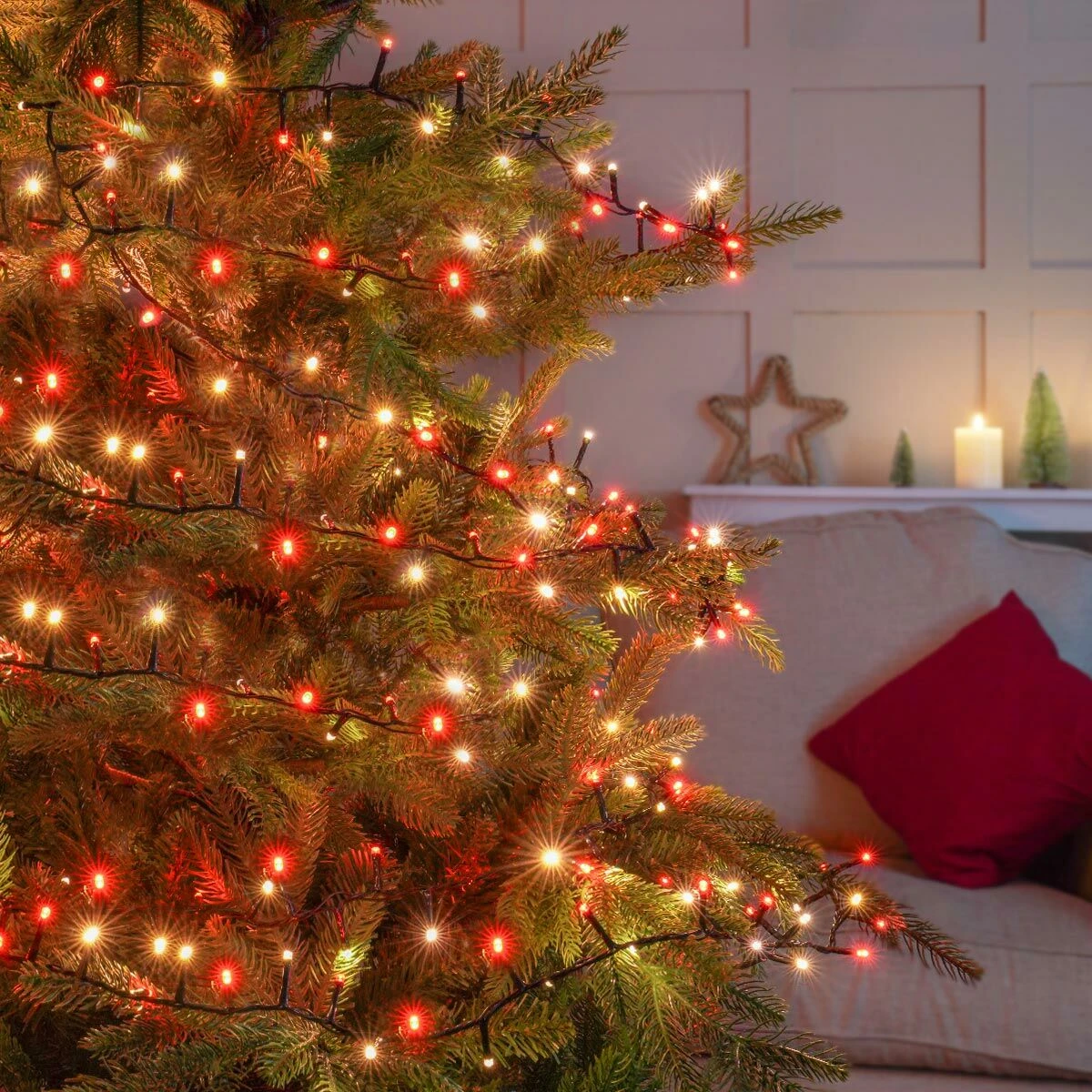 25.9m Outdoor Twinkling Effect Christmas Tree Fairy Lights, 1000 Red & Warm White LEDs