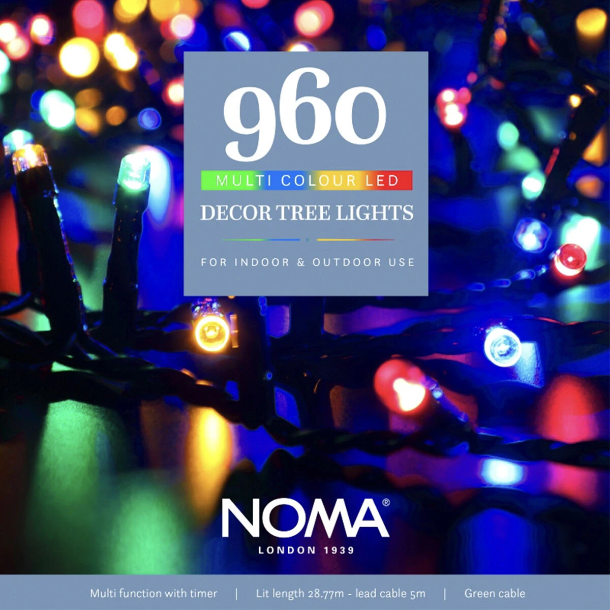 28.8m Outdoor Christmas Tree Fairy Lights, 960 Multi Coloured LEDs