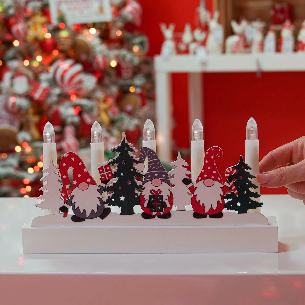 Bright and colourful, this battery powered candle bridge depicts three jolly gonks surrounded by a festive setting, complete with presents ready and waiting for the big day. At 28cm tall and finished with 5 dainty candles, there’s a total of 5 warm white LED bulbs that are perfect for lighting up your Christmas display.