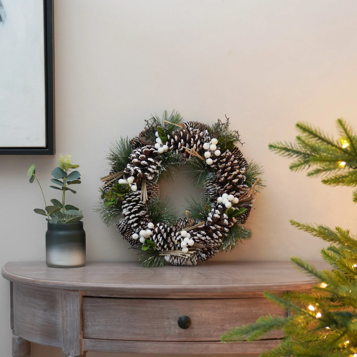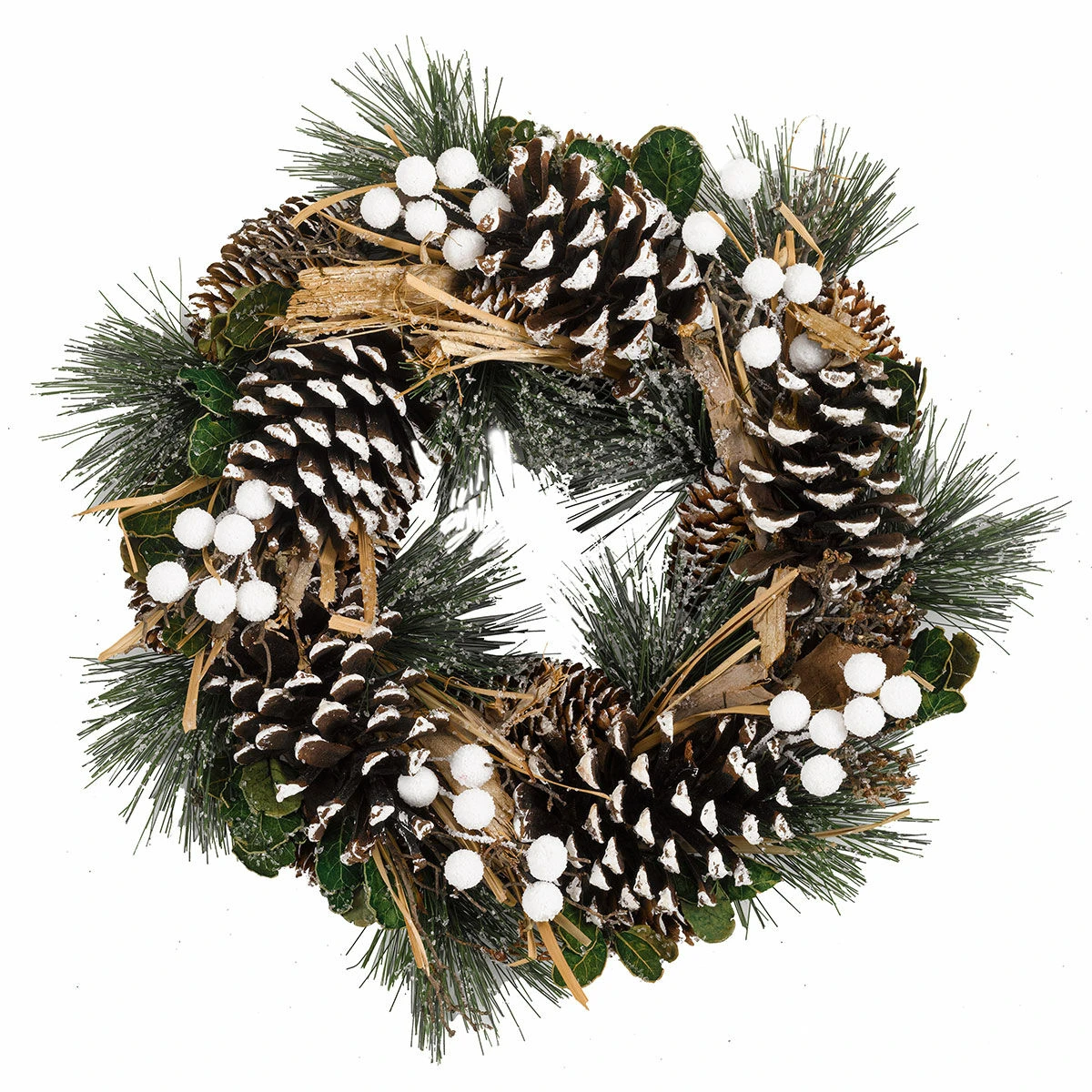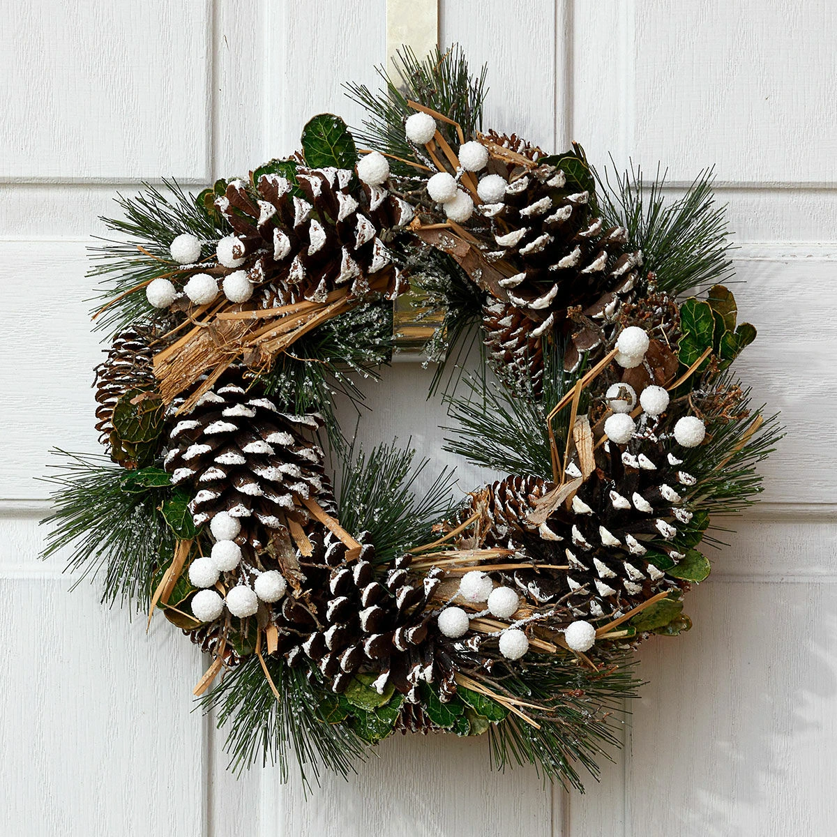 Inspired by nature, this realistic MistlePine wreath creates the perfect finishing touch to home, seasonal and winter wedding décor. The dried natural materials blend seamlessly within any decorative theme, while the pine cone and white berry decorations inject a dose of elegant style wherever it’s placed.