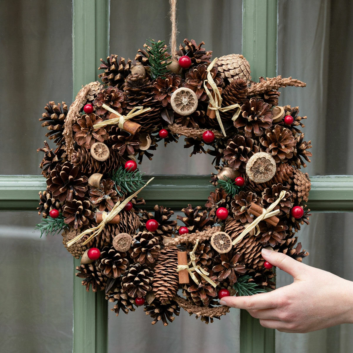 Inspired by nature, this realistic WinterSpice wreath creates the perfect finishing touch to home, seasonal and winter wedding décor. Blending seamlessly within any decorative theme, the pine cones, dried orange, and cinnamon stick decorations inject a dose of elegant style wherever it’s placed.