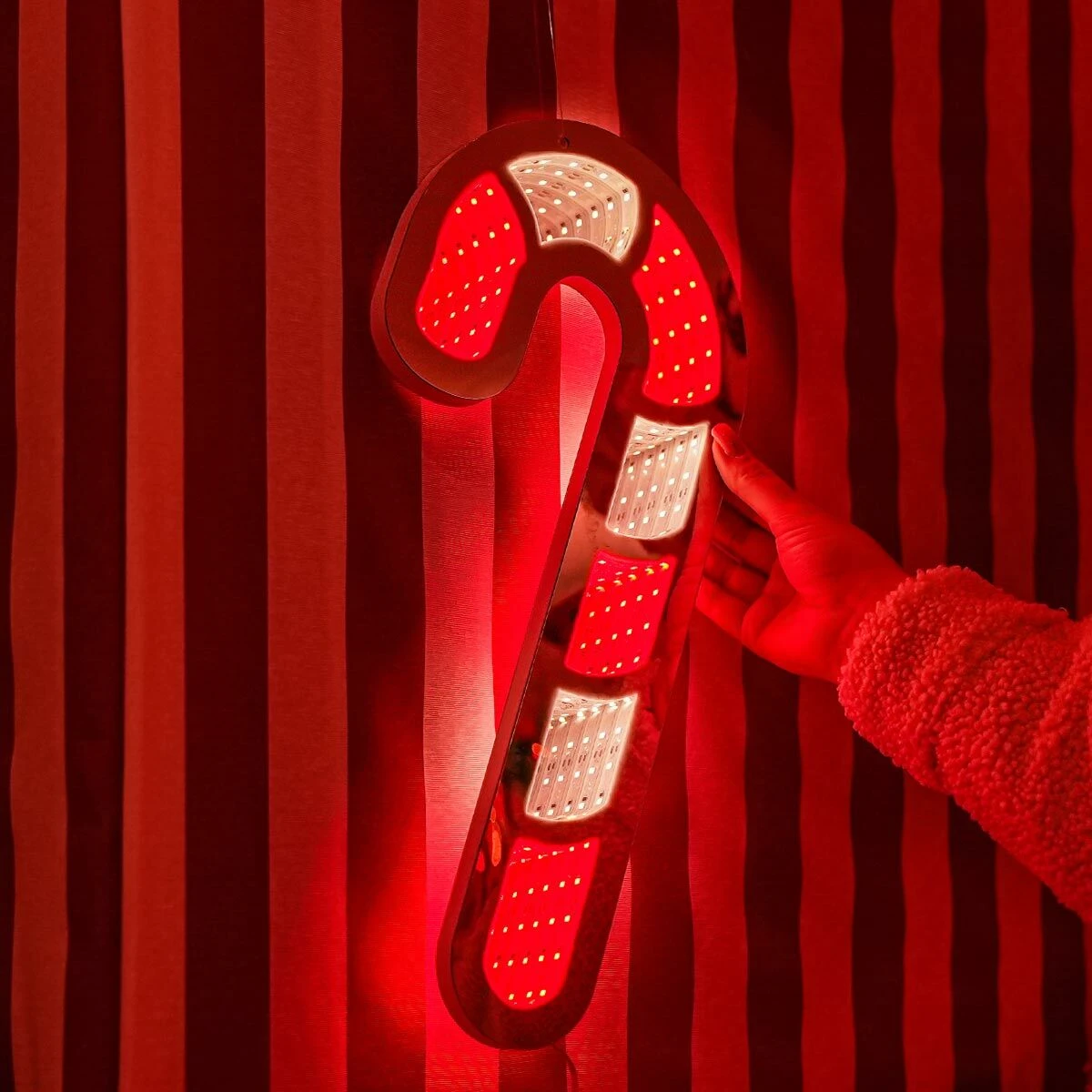 Ramp up the festive cheer and take your indoor lighting to a new dimension with this mesmerising hanging candy cane infinity light.