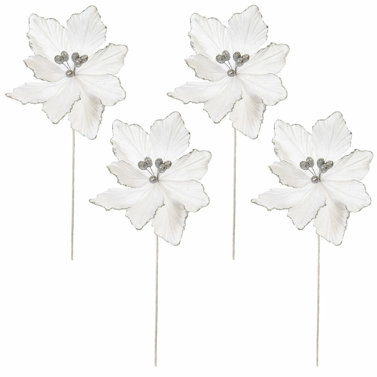 Its sturdy stem means you can spruce up your tree, garland or wreath with ease, whilst the delicate fabric floret brings a softness, and glittered finish and center injects an added wow-factor into your décor. Add the finishing touches to your Christmas display or embrace your inner festive florist to create an effortless Christmas bouquet with these beautifully elegant Magnolia stems.