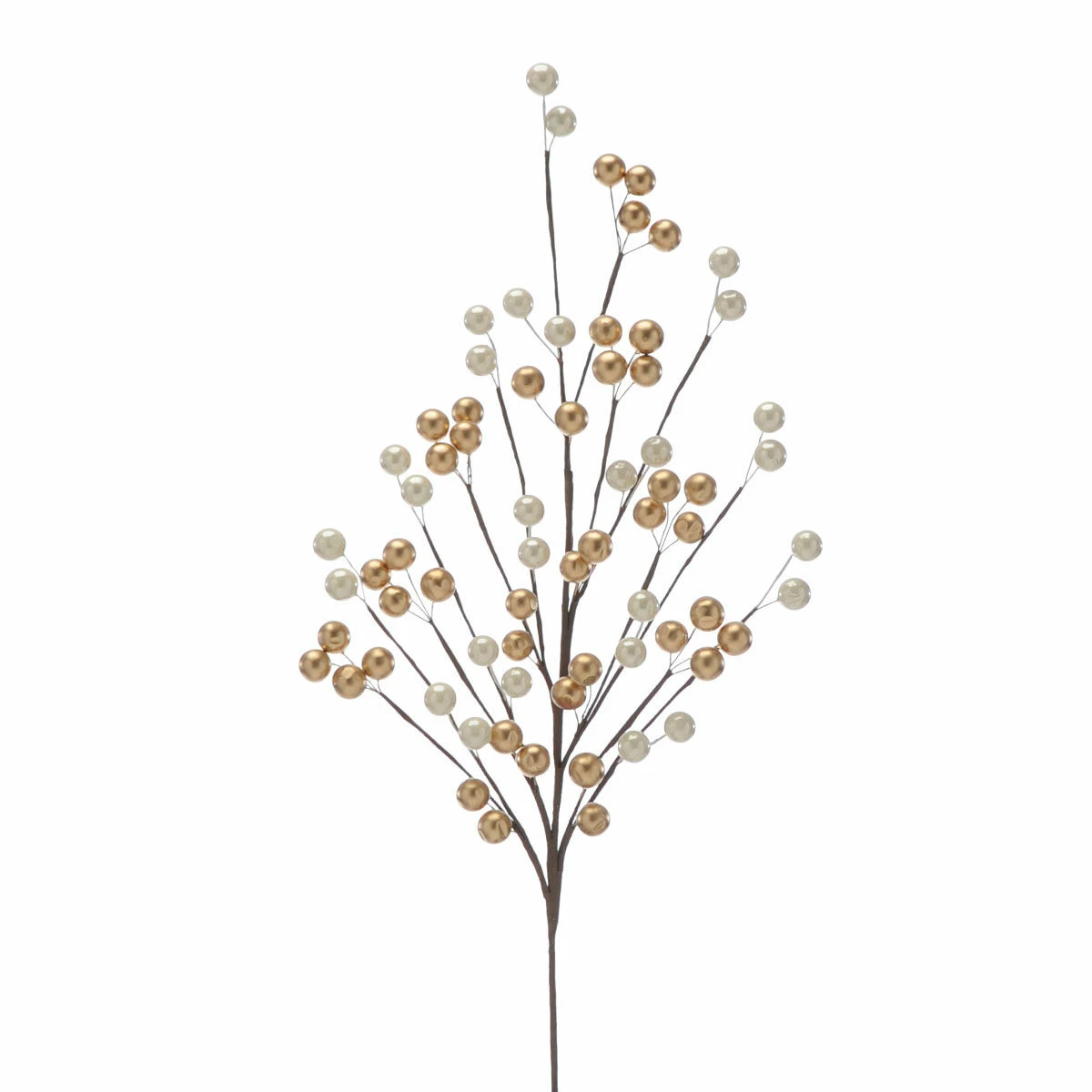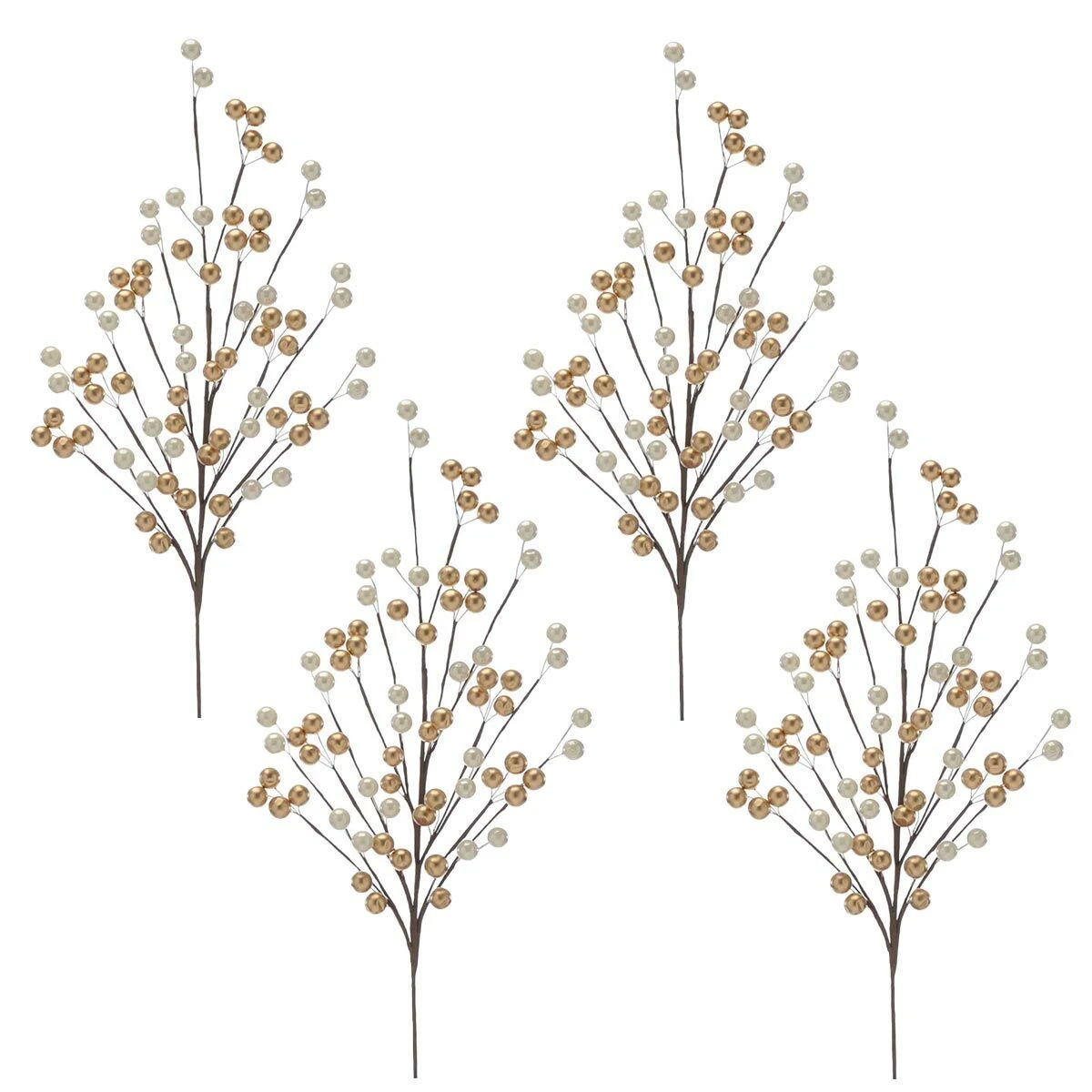 56cm Gold & White Berry Spray Christmas Tree Decoration, 4 Pack