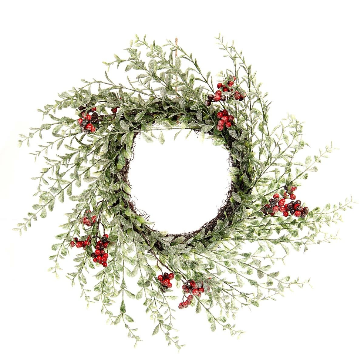 Traditional Pittosporum foliage and frosted red and purple berries sit delicately across the natural wicker body. The wreath itself comes with a natural twine string, making it easy to effortlessly hang within your home.