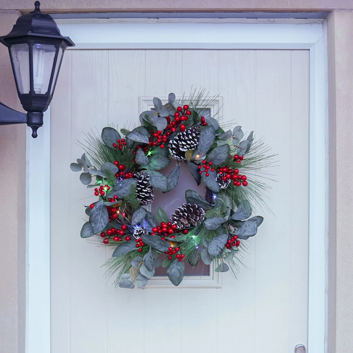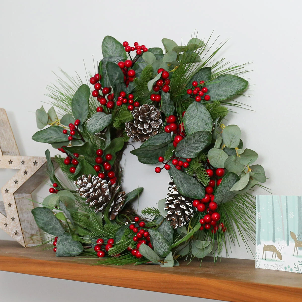 This beautiful wreath can be used as a standalone decoration, or can also be paired with the mistletoe and pinecone garland for a matching aesthetic. It also looks incredible used with firefly wire lights woven intricately throughout the foliage.