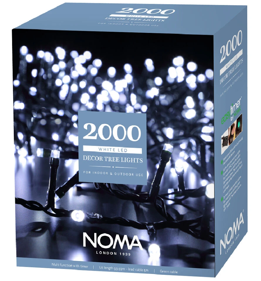 60m Outdoor Christmas Tree Fairy Lights, 2000 White LEDs