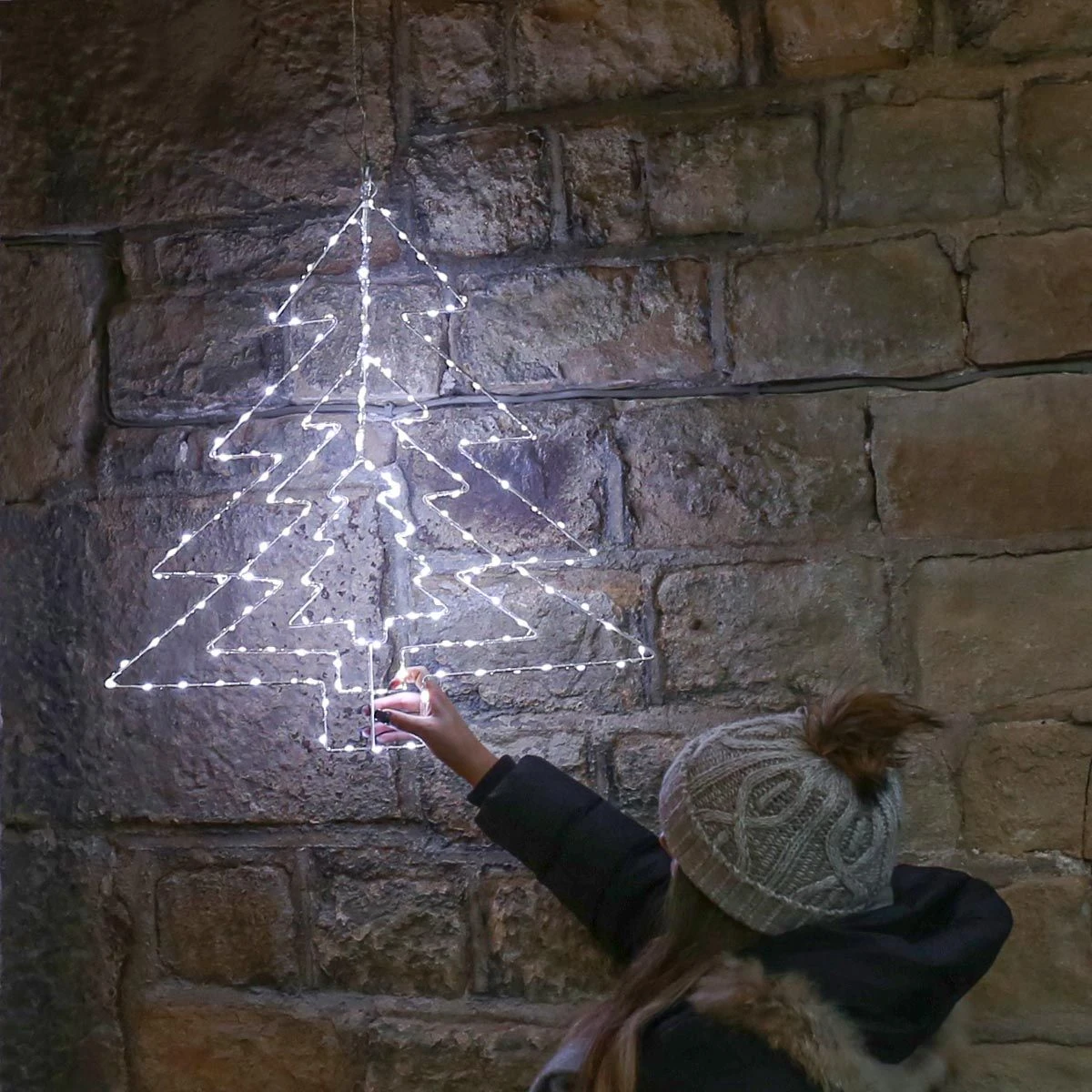 The white firefly LEDs, housed along the delicate silver wire, are wrapped around the metal frame of the tree, outlining the 3 tree shapes within the decoration. There is a handy controller where you can select from 8 different flashing speed settings, to create your own unique display. This silhouette can be hung using the handy hook attached to the top, and looks amazing used as seasonal wall décor.