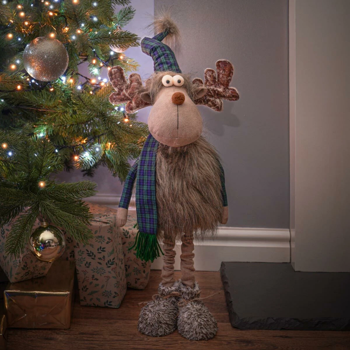 On Dasher, on Dancer, on Prancer, on Vixen! Bring the magical legend of Christmas to life with this charming plush Reindeer gonk. At up to 94cm in height, this freestanding fluffy Reindeer decoration has telescopic legs, allowing you to change his size to what fits your style and home.