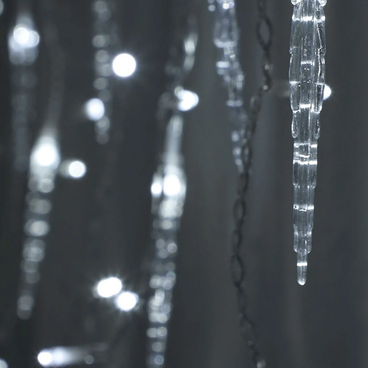 These sparkling lights hang vertically in alternate lengths, with each brightly shining bulb emitting a radiant tone that gives the illusion of falling snow and perfectly formed icicles wherever you choose to drape them. Perfect places to display these lights are around windows, along guttering and across apex roofs and garages.