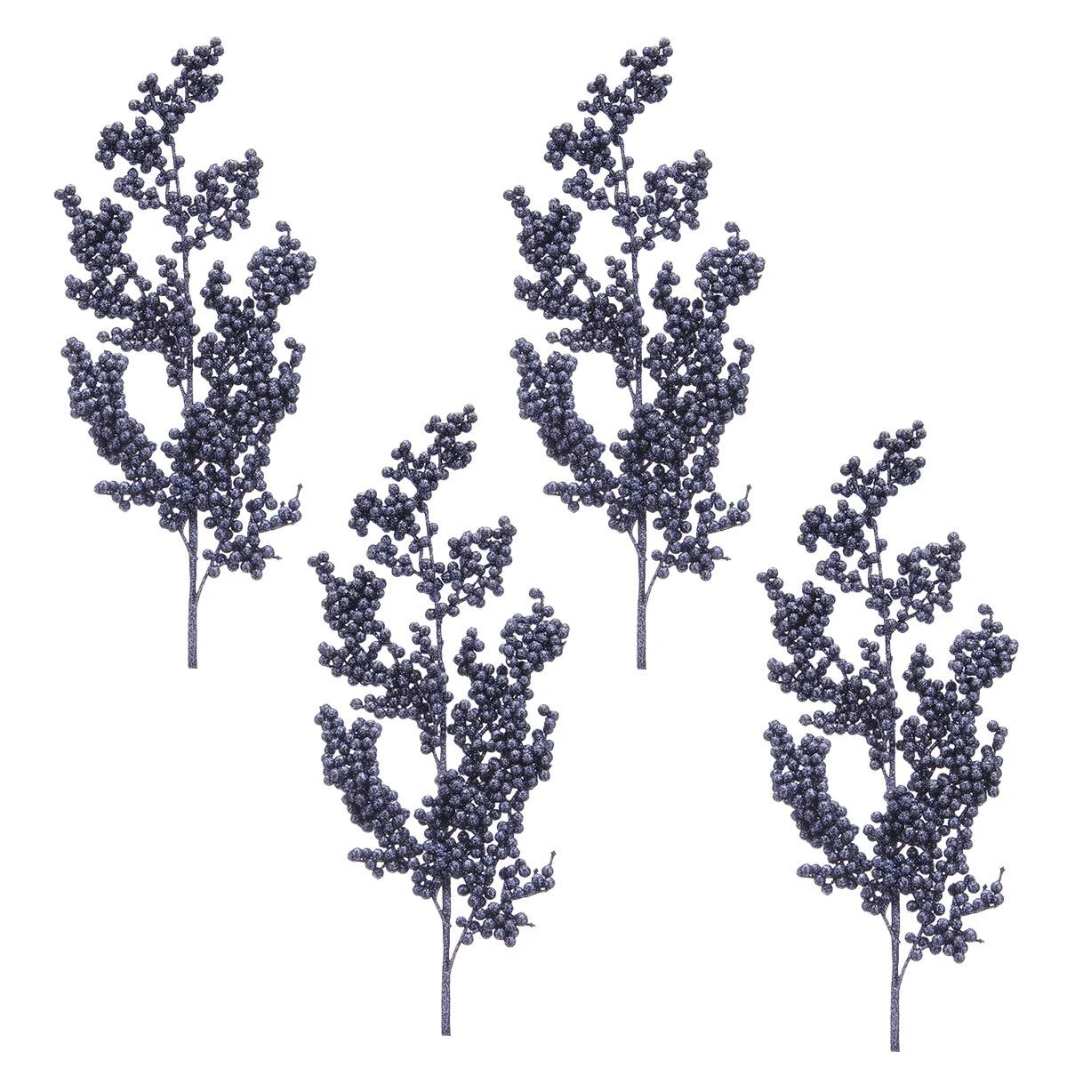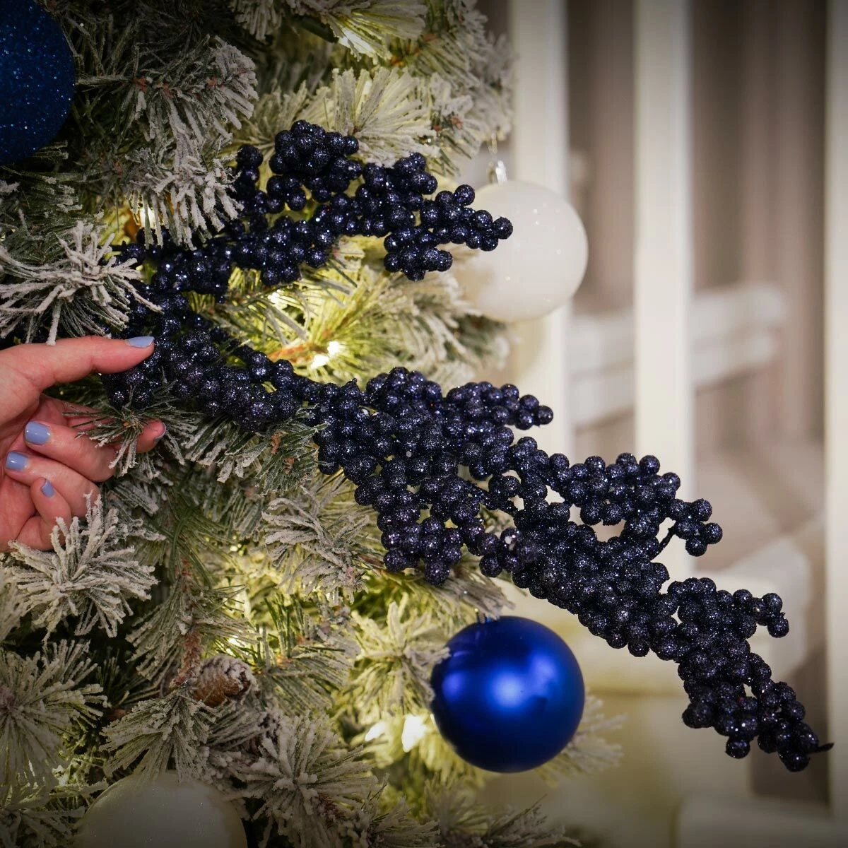 85cm Navy Glitter Mini Berry Stem Christmas Tree Decoration, 4 Pack