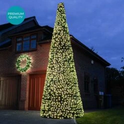 4m Outdoor Green Commercial Pre Lit Christmas Cone Tree, Rubber Cable Warm White ConnectGo® LEDs