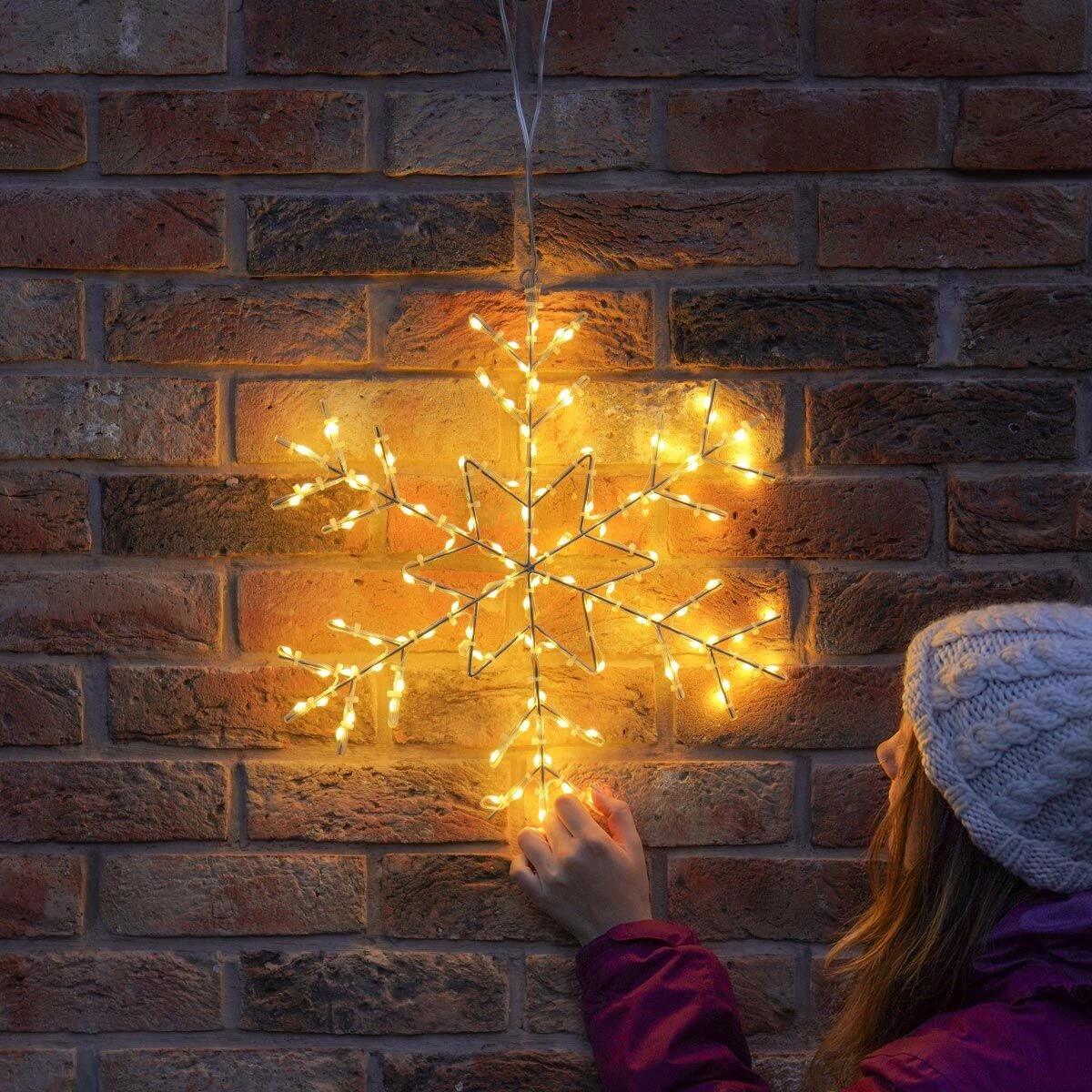 Don’t get yourself in a flurry – create a dazzling snowstorm regardless of the weather thanks to this beautiful 44cm in height snowflake! Simple yet effective, this sturdy black metal frame has been surrounded by 110 warm white multifunctional LEDs which sit along a thin silver wire, making it a true beauty to behold. And thanks to the generous 1m in length clear lead cable length, you can transform your home or garden into the winter wonderland of your dreams easier than ever.
