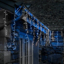 5.8m Christmas Snowing Effect Icicle Lights, 240 Blue And White LEDs