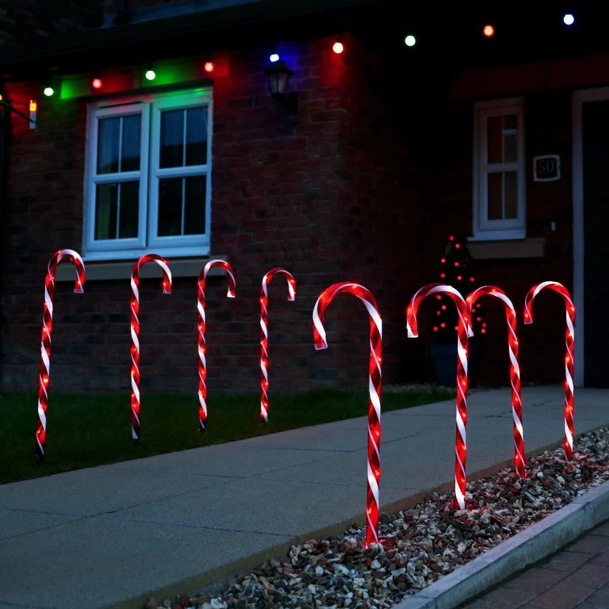 Line your path or driveway this Christmas with these charming red and white striped candy cane stake lights. Connected together along a 1.5m lit length, and spaced 53cm apart, these lights boast 40 white LEDs (10 LEDs per candy cane), perfect for setting the seasonal winter wonderland scene outside your home.