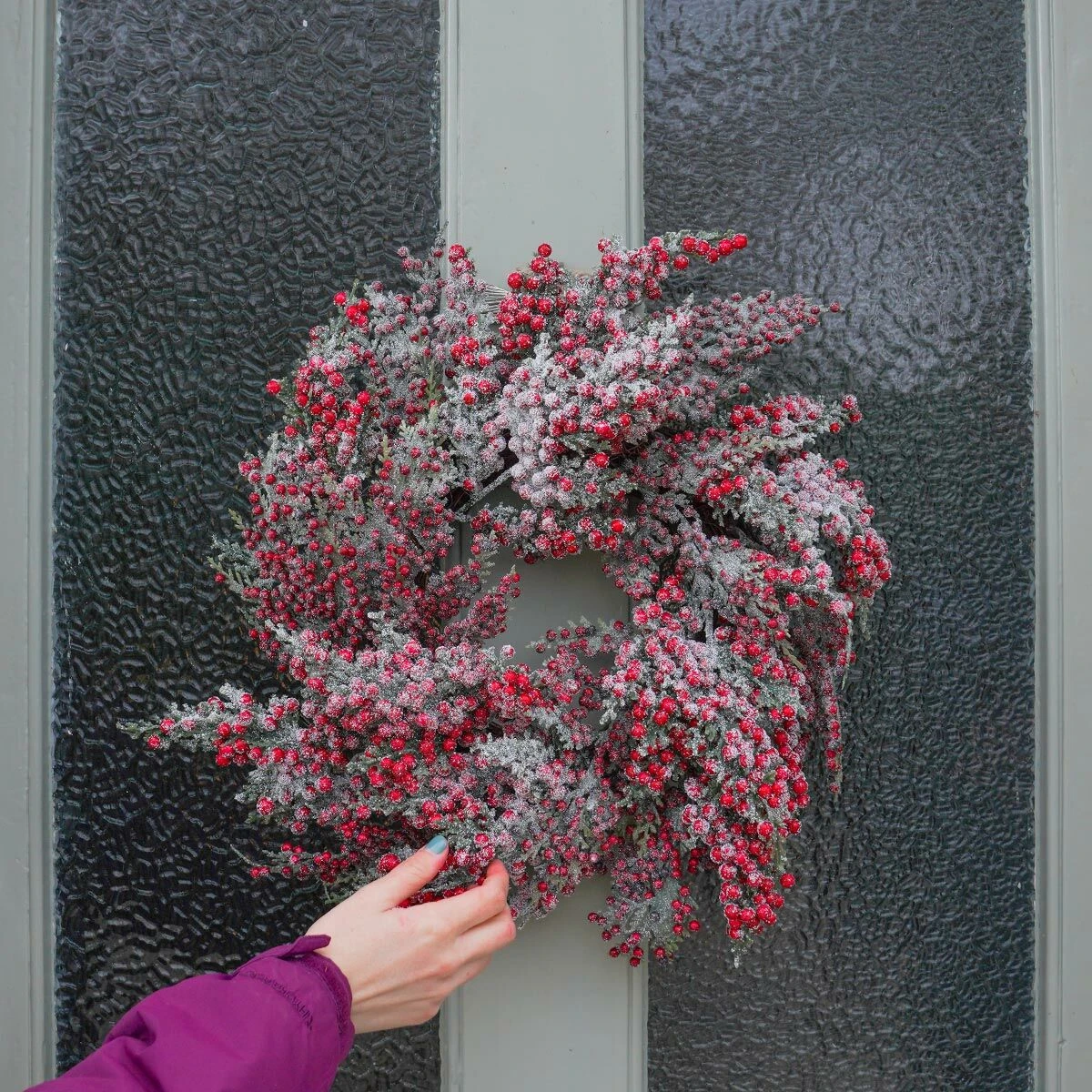Adorned with frosted Conifer branches and red berries, this wreath has been plucked directly from a scenic winter forest. Realistic and bursting with colour, this wreath will look stunning on any door whether it be indoors or out.