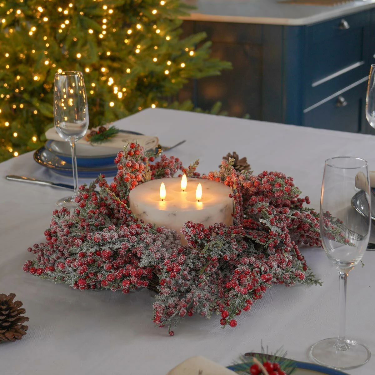 Measuring at a sizeable 50cm in diameter, this wreath is sure to inject a healthy dose of feel-good festive charm wherever you choose to place it. Whether it be pride of place on your front door or used as part of a charming festive tablescape, this flocked wreath is sure to enhance the beauty of your Christmas décor year after year.