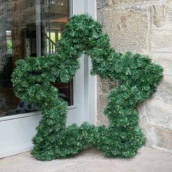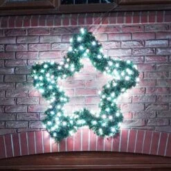 1.2m Outdoor Green Commercial Christmas Pre Lit Star Wreath,White ConnectGo® LEDs