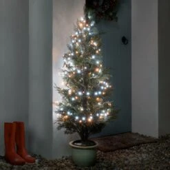 7.7m Outdoor Twinkling Christmas Tree Fairy Lights, 300 Blue & White LEDs