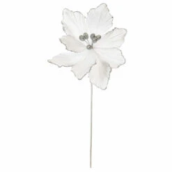 40cm White Velvet Magnolia Christmas Tree Decoration, 4 Pack